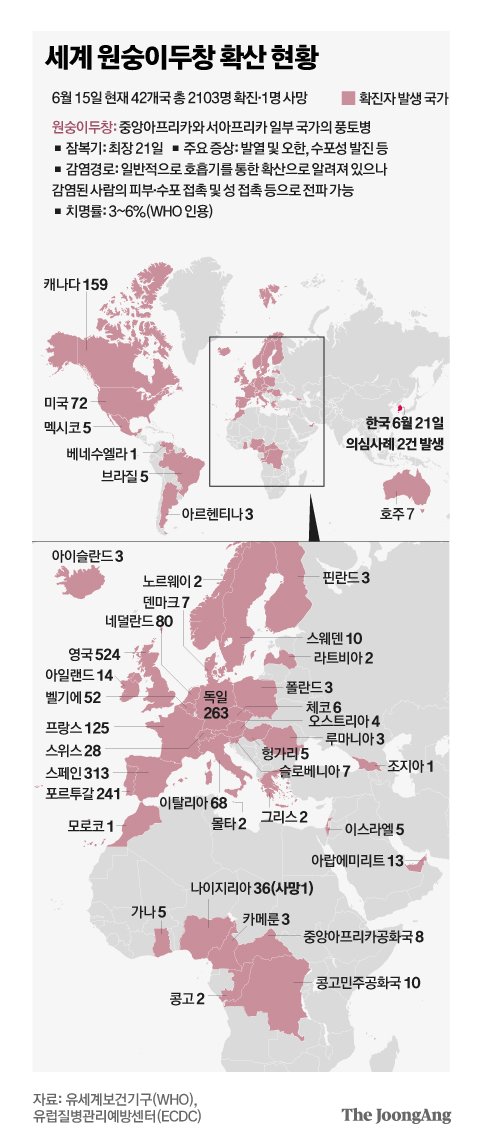 2022년 6월 8일 기준 국내에서 원숭이두창이