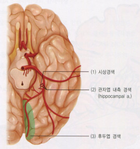 주로 후대뇌동맥, 후교통동맥의 이상으로