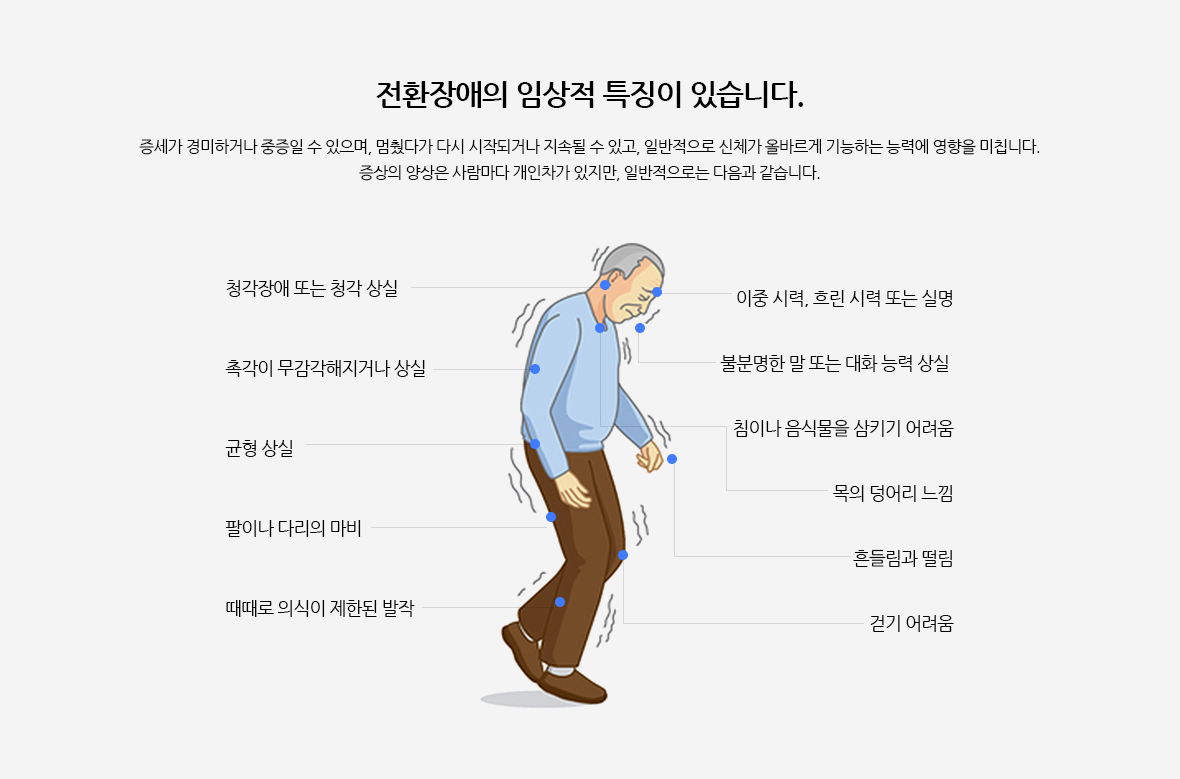 수의적 운동이나 감각 기능에 영향을 미치는 결함으로