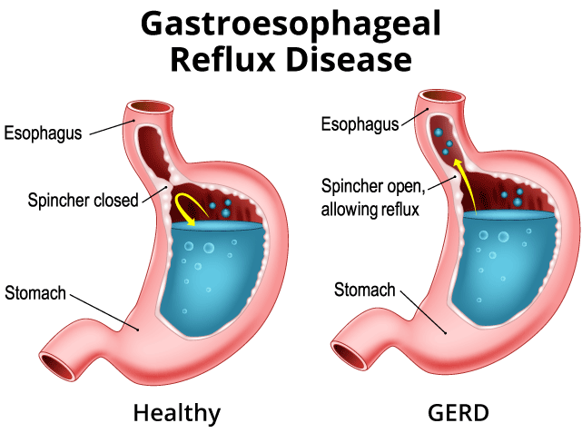 식후나 유문 협착, 위 내용물 정체, 위액 분비 과다 등으로 위 내용물이 증가하면,이것이 십이지장으로 배출되지 못하고 식도로 역류할 수 있습니다.