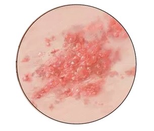 수포는 곧 터져 삼출물을 동반한 궤양을 형성합니다.