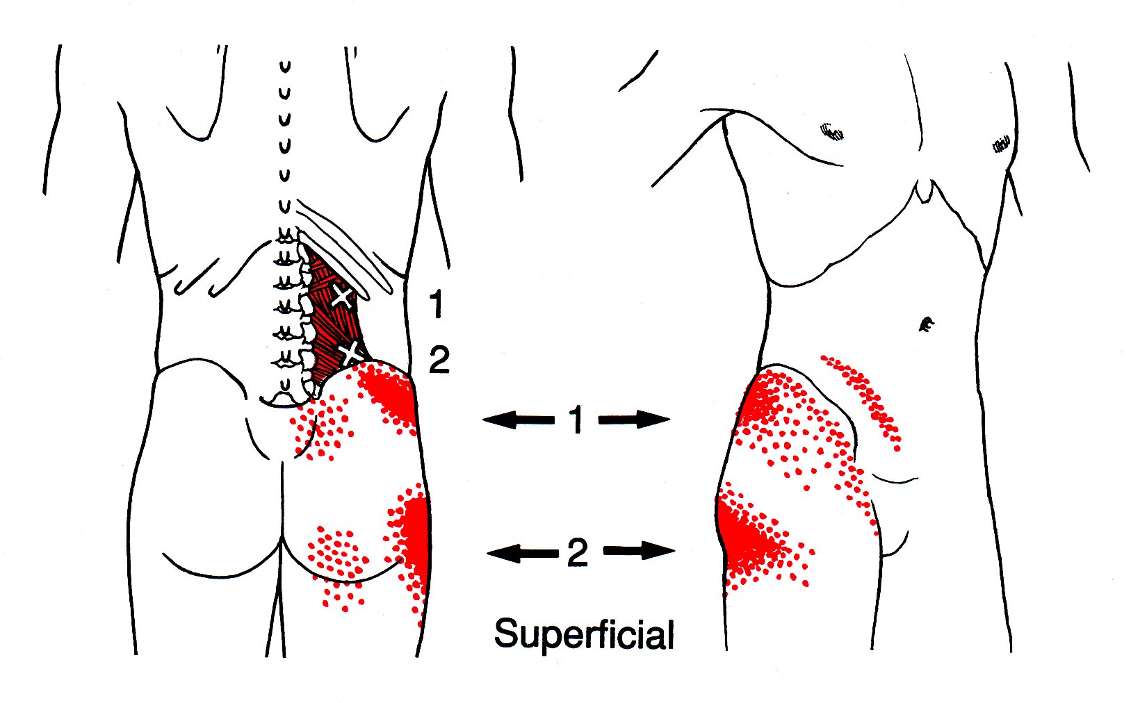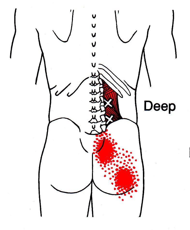 심부의 아래쪽 TrPs는 하둔부로 통증이 방사됩니다.