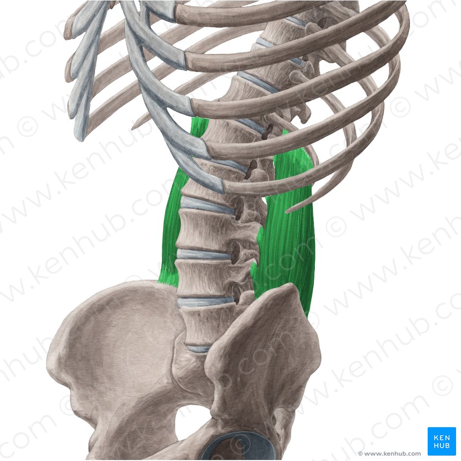 insertion : T12-L4 횡돌기와 rib 12번