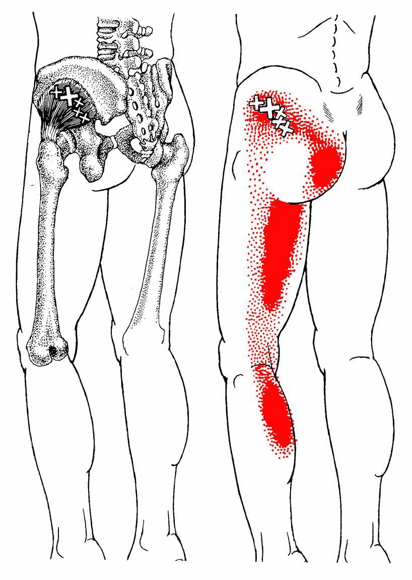 Piriformis Trigger Point Diagram 이상근의 TrPs의 경우 방사통은 천장관절부로 방사되기도 하며,