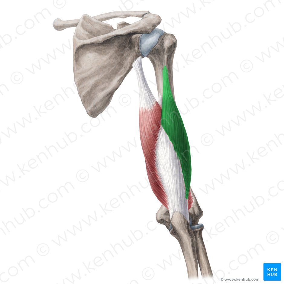 Shoulder joint: extension and adduction of the arm (long head)상완삼두근은 팔의 뒷면을 구성하는 근육으로