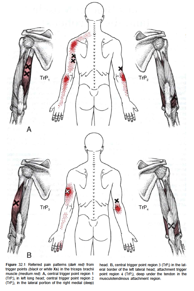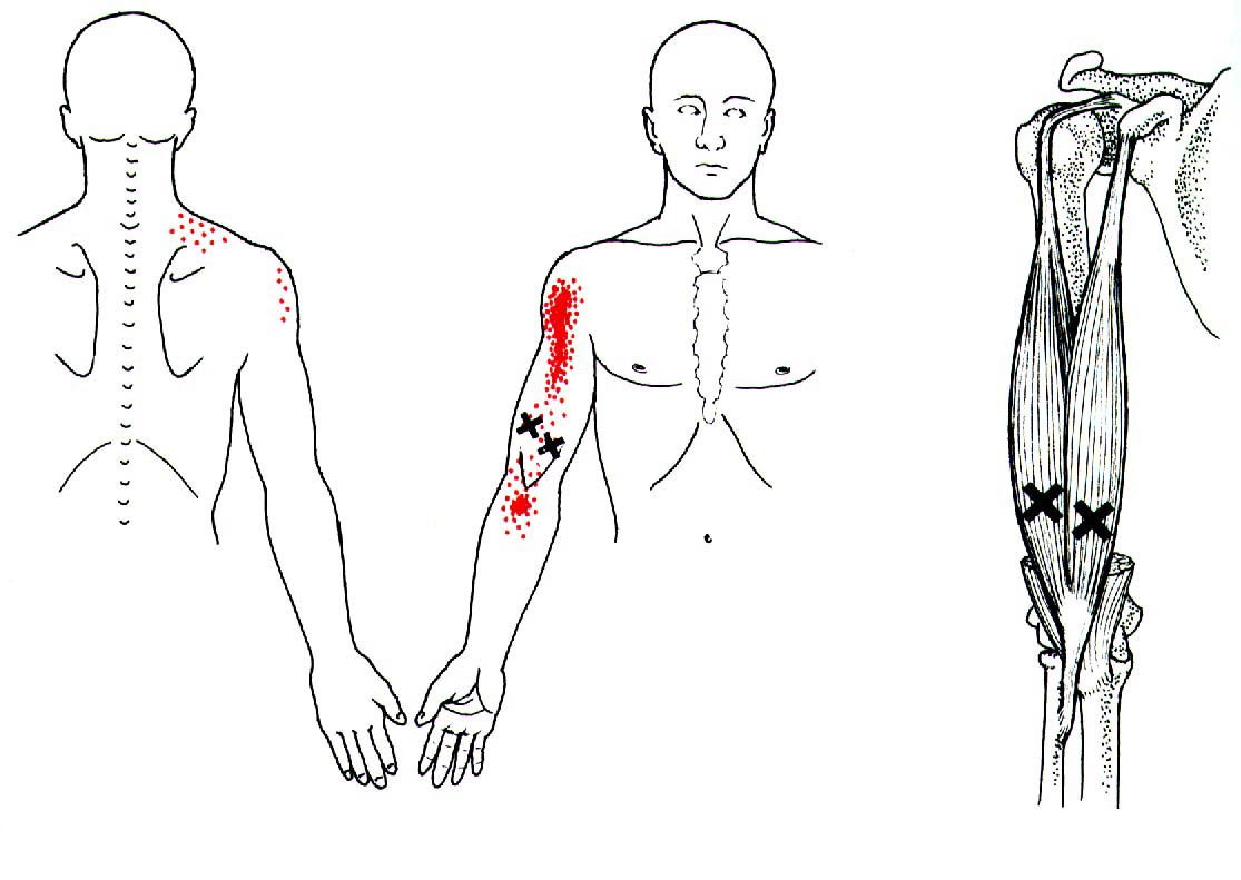 상완요골근 부위가 애매하게 아픈 경우 삼두근의 압통점을 찾아보면 좋습니다.