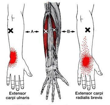 왼쪽 : 척측수근신근 척측 수근 신근에 이상이 생기면 전완 배측에 통증이 나타나며