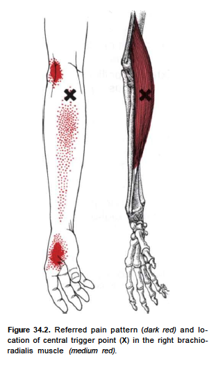 상완요골근은 주관절 외측 위쪽, 요골 경상돌기에 통증을 일으킬 수 있는 근육으로