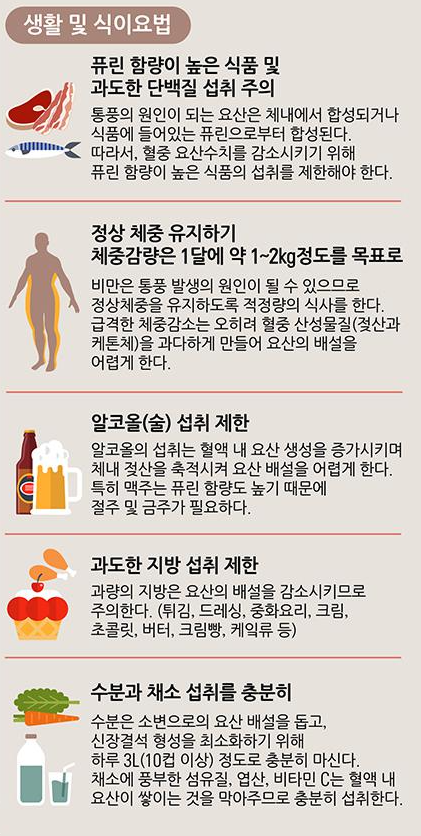 *요산 : 음식을 통해 섭취되는 퓨린(purine)이라는 물질을 인체가 대사하고 남은 산물