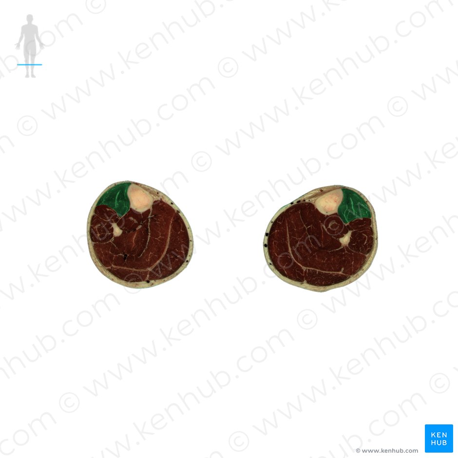 경골조면의 하단 레벨 근처에 위치합니다.