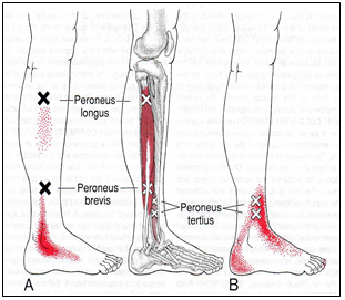 전경골근의 압통점은 주로 근복부 상부에서 많이 나타나며,