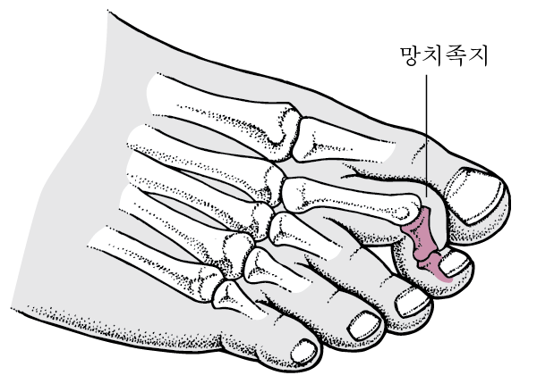 *추상족지(mallet toe) 원위지절이 굴곡 된 것은 추상족지라 합니다.