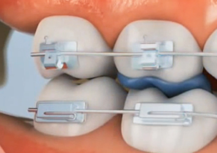 윗니가 아래 치아의 교정장치에 부딪혀서 어금니가 뜰 수 있습니다.