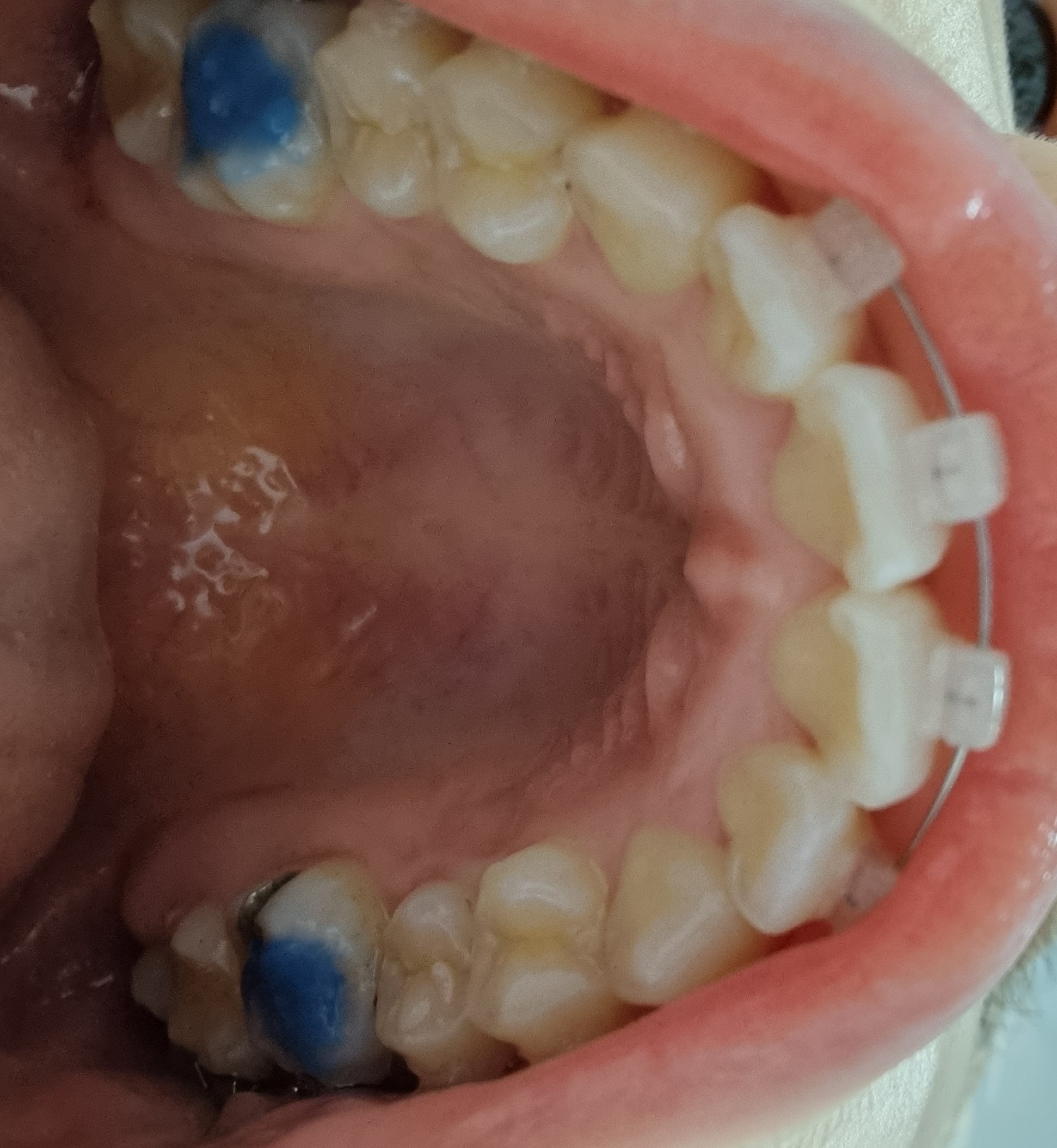 이런 경우 어금니에 파란색 레진인 바이트블럭을 올려서