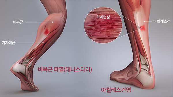 순간적으로 종아리 근육을 쓸 때 종아리 근육 파열이 나타날 수 있습니다.