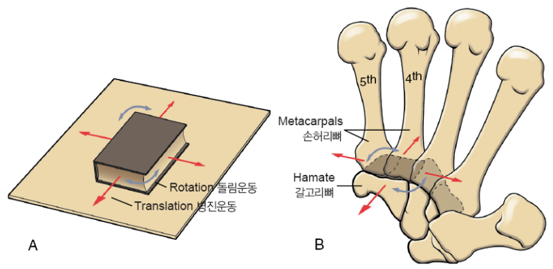 - 두 개 면의 움직임 (굴곡과 신전, 외전과 내전)