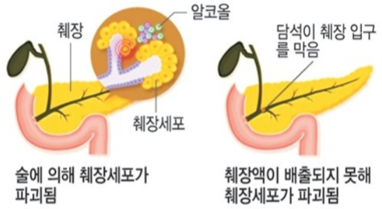 술이 대사되면서 나오는 독성 물질이 췌장에 손상을 주거나,