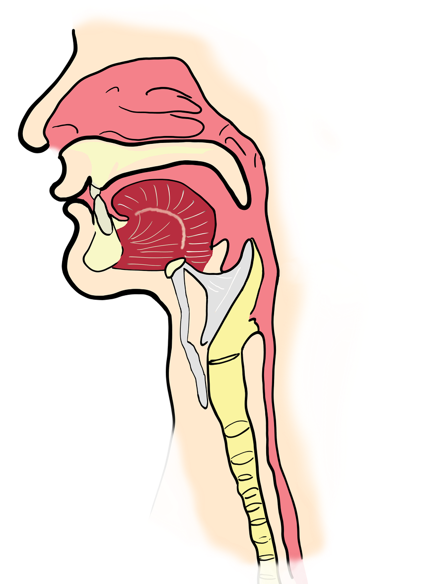 이어 혀가 음식물을 입천장으로 밀어 올리면서 목(인두)으로 이동시킵니다.