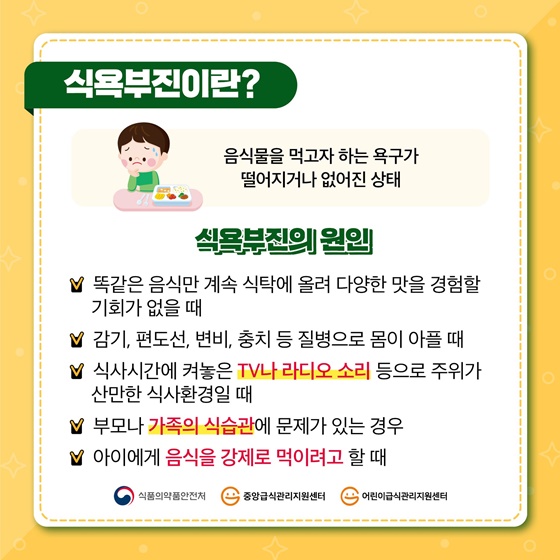특히 성장기 어린이나 노인에게서 식욕부진이 나타난 경우