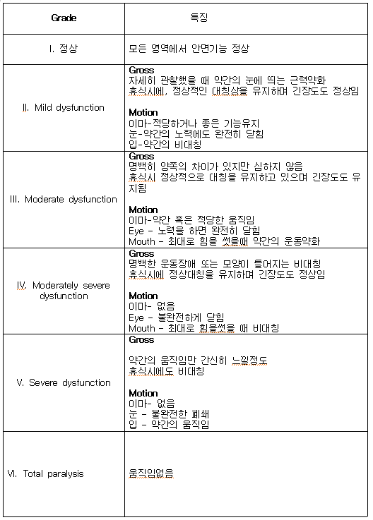 6단계 분류법을 통해 안면운동기능의