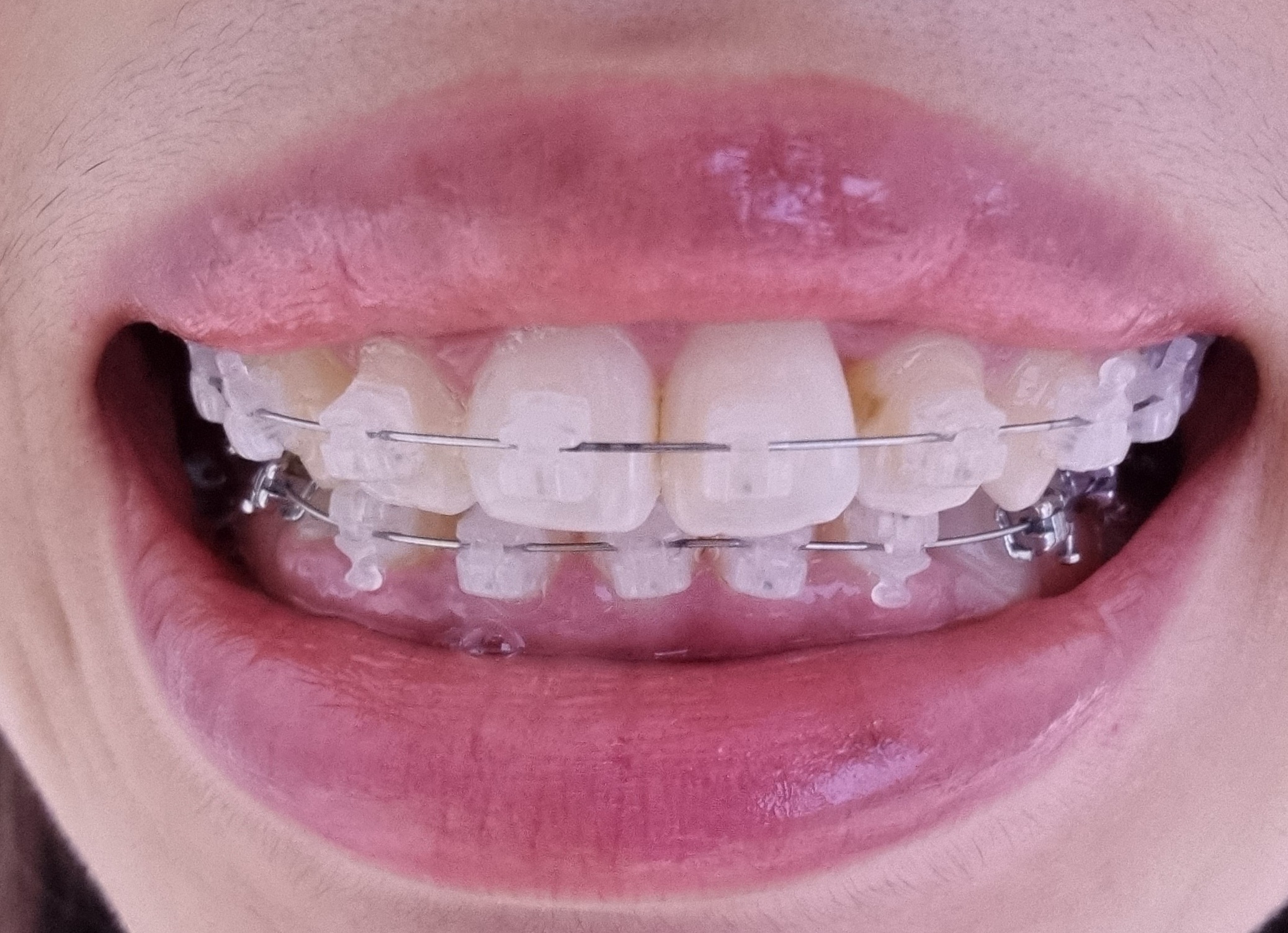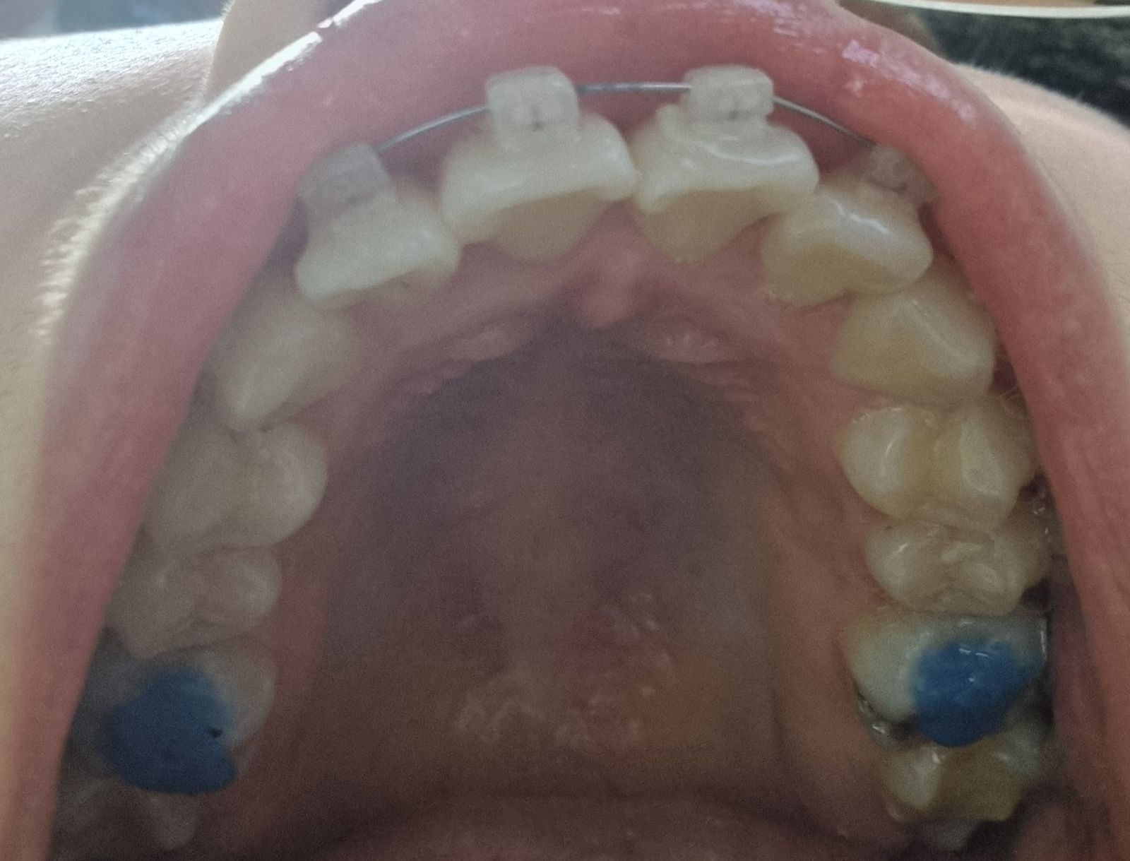 그래서 윗니 브라켓을 한개 떼고 다시 붙였습니다.