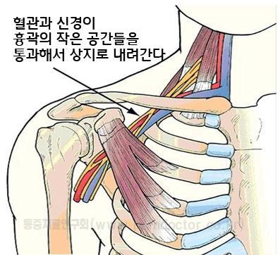 신경포착이 일어나서흉곽출구증후군의 원인이 됩니다.[흉곽출구증후군의 분류]
