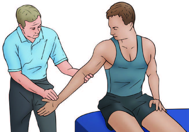 어깨를 90도 외전, 외회전 시키고팔꿈치를 90도 굽힌 채 팔을 3분간 들고 있게 하면서