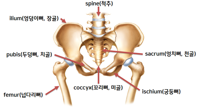 우선 골반이 어떻게 구성되어 있는 지부터 살펴보면